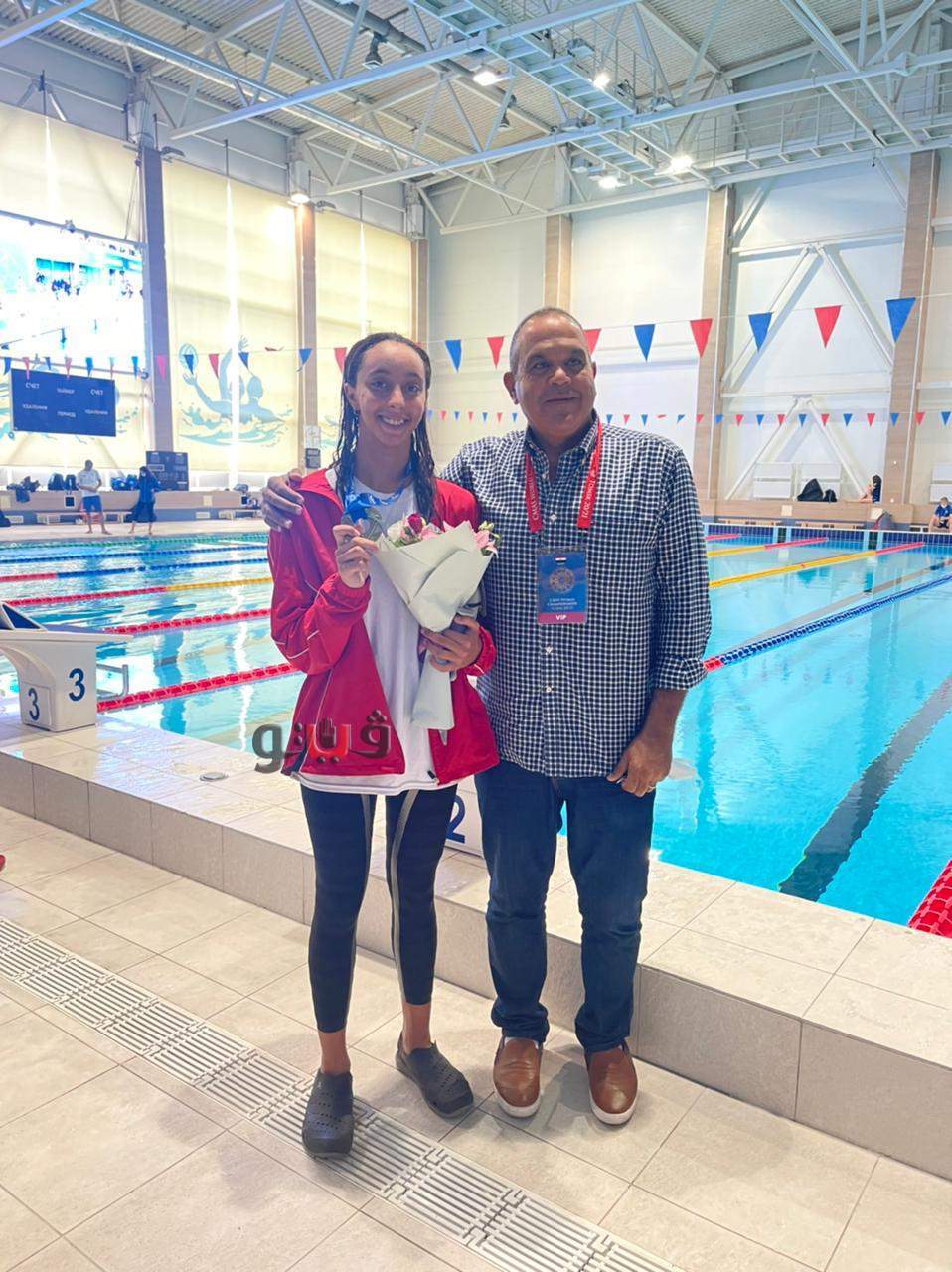 جدير بالذكر أن ندا أبو مسلم حصلت على المركز الثانى والميدالية الفضية أول أمس فى سباق 1500 متر سباحة بالزعانف المونو .
