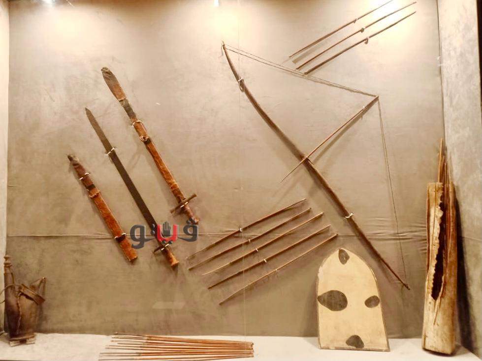 وتتنوع تلك القطع ما بين قطع ظران وسكاكين وسهام وجعبة سهام بداخلها مجموعة من السهام الخشب، وقربة مياة، وسيوف من العصر الإسلامي، والطبول التي كانت تستخدم قبل الحروب، ومجموعة من القنابل من الفخار بداخلها بقايا بارود ترجع إلى العصر الاسلامي، ودرع من الخشب الملون يرجع إلى عصر الدولة الحديثة. ومن المقرر أن يستمر لمدة شهر.