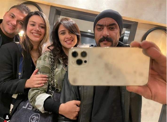 يظهر العوضي في الصورة، وبجانبه ياسمين عبد العزيز بصحبة أصدقائهما.