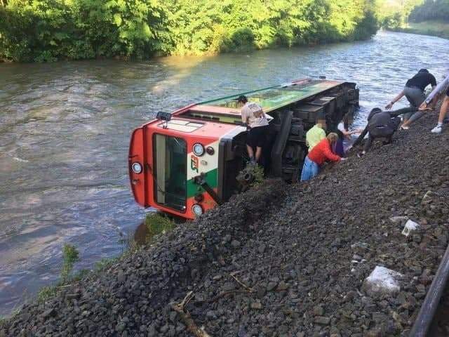 إصابة 17 تلميذا بعد سقوط عربة قطار في نهر بالنمسا | صور