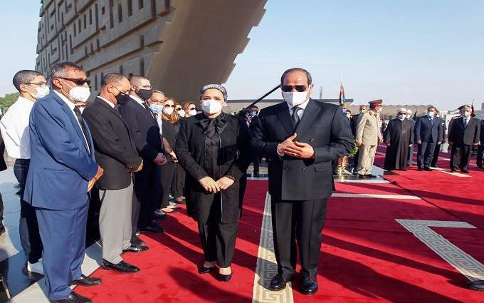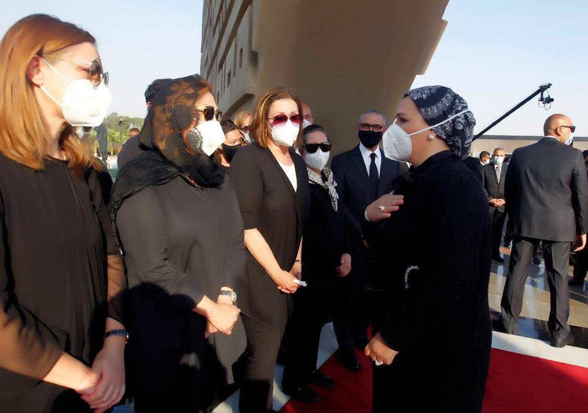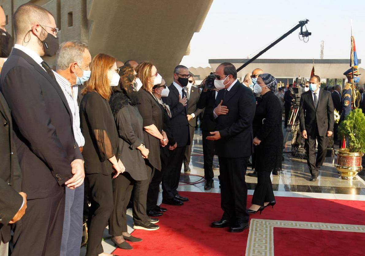 السيسي وقرينته يقدمان العزاء لأسرة الراحلة جيهان السادات | صور
