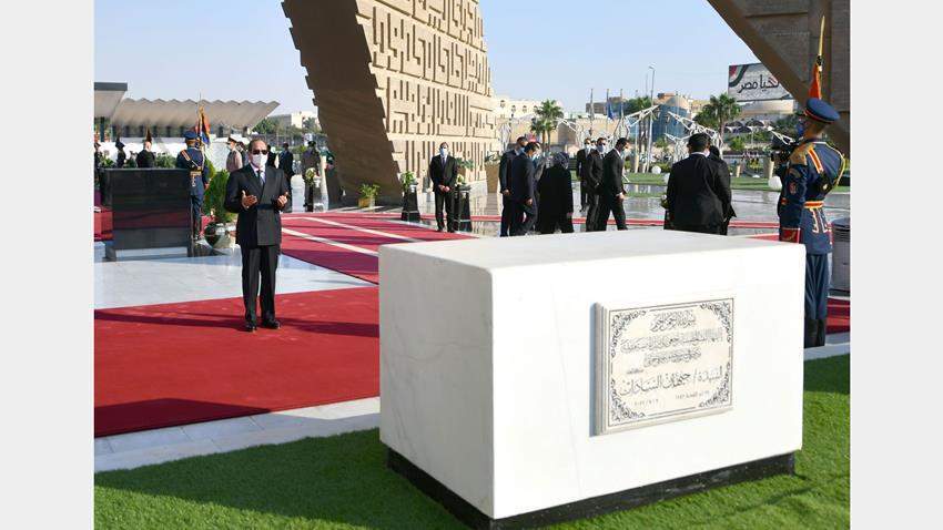 السيسي يقرأ الفاتحة على روح جيهان السادات | صور