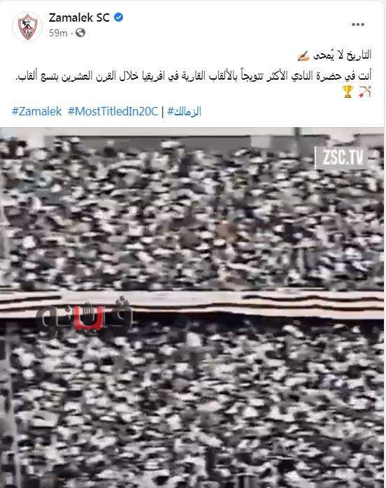 وكتب الحساب الرسمي للزمالك عبر الفيسبوك عبارة "التاريخ لا يُمحى.. أنت في حضرة النادي الأكثر تتويجا بالألقاب القارية في أفريقيا خلال القرن العشرين بتسعة ألقاب".