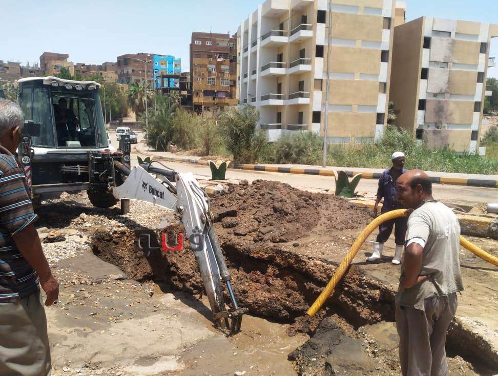 وأمر اللواء أشرف عطية محافظ أسوان بسرعة الدفع بالأطقم الفنية لشركة المقاولون العرب والحماية المدنيه وشركه مياه الشرب و الصرف الصحى حيث تم شفط المياه بالكامل من منطقه الكسر وجاري أعمال الإصلاح.