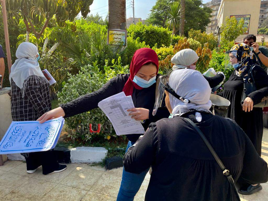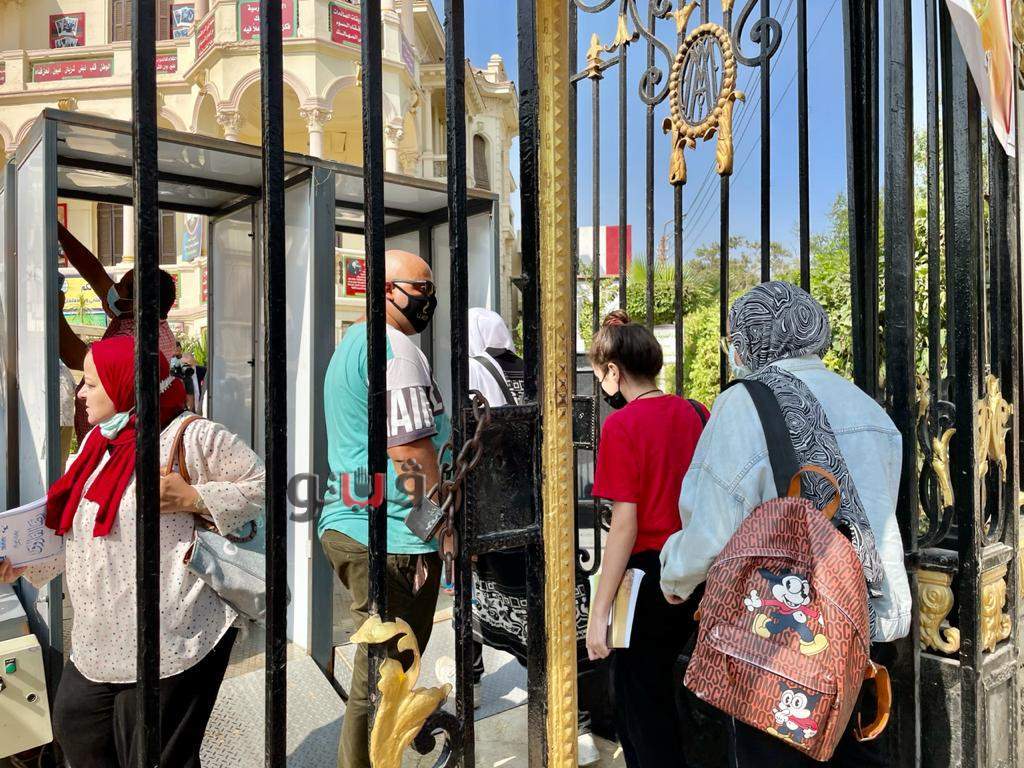 بالكمامات وكاشف المعادن.. لجنة مصر الجديدة تستقبل طالبات الثانوية العامة|فيديو