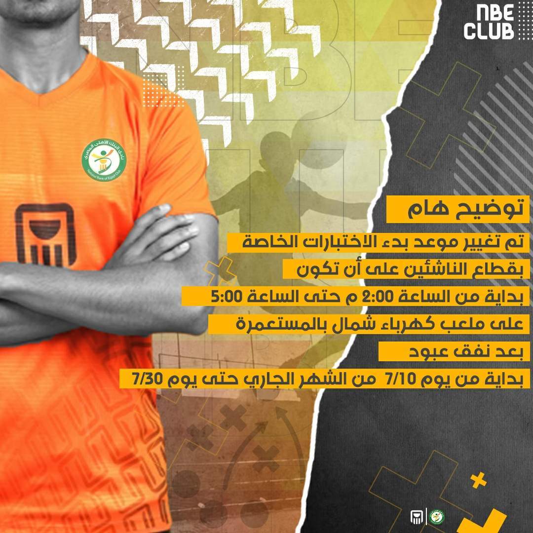 تقديم موعد اختبارات الناشئين بنادي البنك الأهلي «ساعة ونصفا»