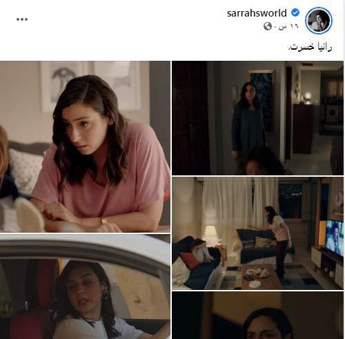 نشرت الفنانة سارة عبد الرحمن مؤخرًا منشورًا على صفحتها الرسمية على موقع التواصل الاجتماعي فيس بوك قائلة " رانيا خسرت" وذلك تعليقًا على تطورات شخصيتها في مسلسل ليه لأ 2.