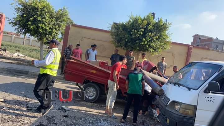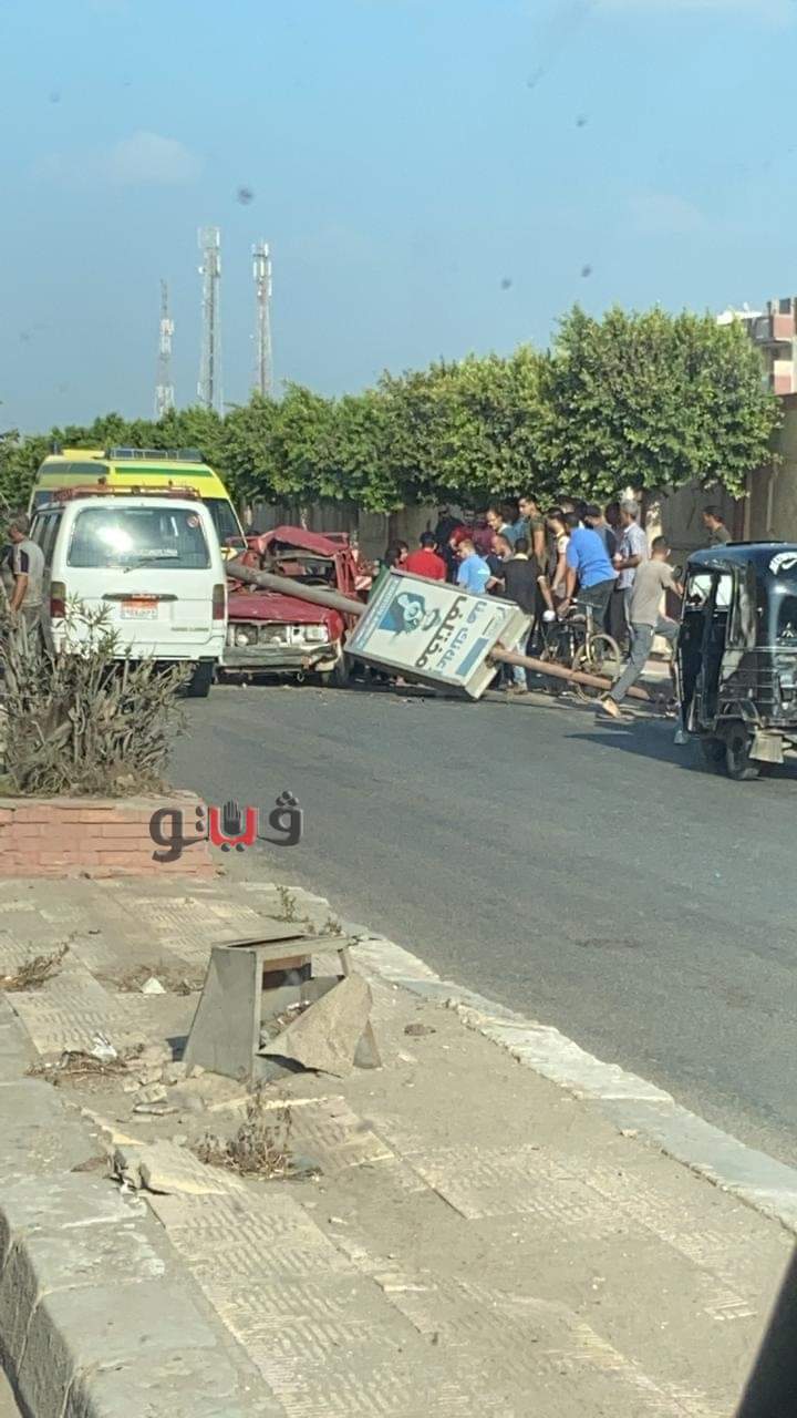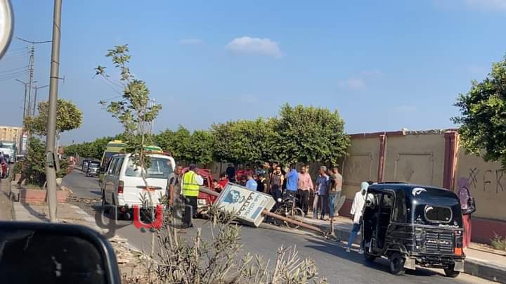 سقوط عمود إنارة على سيارتي نقل وميكروباص بالغربية