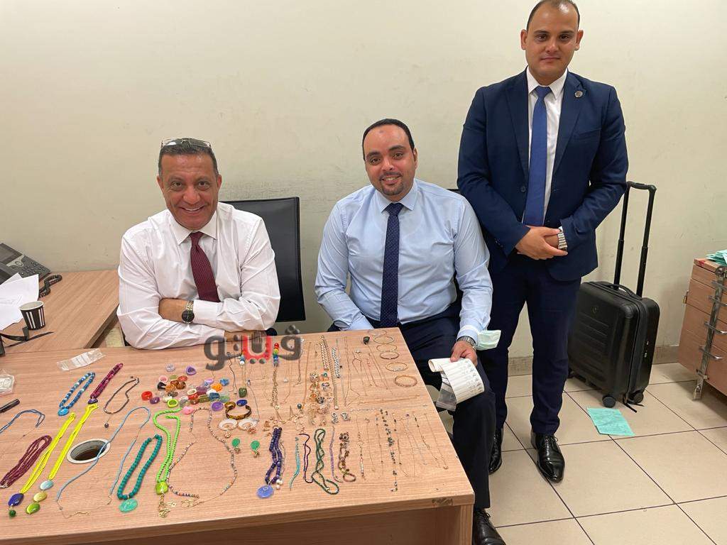 واضافت المصادر ان محمود عبد النبي عباس مدير الحركة المشرف على صالة الوصول بمبني الركاب رقم ٢، كلف محمد جمال فرج مأمور الجمرك، بتفتيش حقائب الراكبة مما أسفر عن وجود كمية من المشغولات، وكلف اسامة محمد دياب مدير الجمرك، نورهان محمد فؤاد مأمور الجمرك، بتفتيش الراكبة ذاتيا مما أسفر عن ضبط كمية اخرى من المشغولات والإكسسوارات المرصعة بخلاف الشخصي الذي ترتديه بوزن إجمالي يقارب الكيلو ونصف وبعدد إجمالي ١٣٣ قطعة.