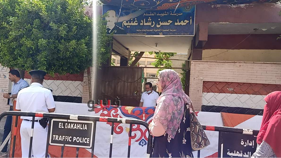 ورصدت فيتو دخول الطالبات بمدرسة الشهيد المقدم أحمد حسن رشاد غنيم " الثانوية بنات " سابقا بمجمع مدارس آداب بمدينة المنصورة ، وسط تعزيزات امنية واجراءات احترازية مشددة .