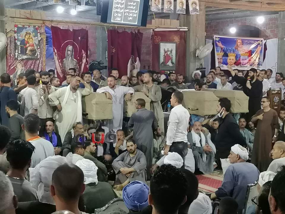وتوافد المئات من قرية الناصرية التابعة إداريًا لمركز بني مزار، شمال محافظة المنيا، اليوم الأحد إلى كنيسة السيدة العذراء والملاك ميخائيل من أجل المشاركة فى تشييع جثامين أربعة من أبناء القرية الذين لقوا حتفهم في حادث حريق مزارع قبرص قبل عدة أيام.