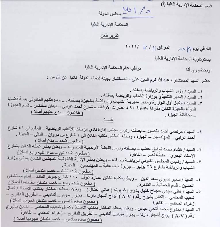 أوصى تقرير هيئة المفوضين الصادر من محكمة القضاء الإداري في الدعويين المطالبتين بوقف قرار حل مجلس إدارة نادى الزمالك ، أصليا، بوقف الدعويين تعليقيا وإحالتهما إلى المحكمة الدستورية العليا، للفصل في مدى دستورية نص المادة 1 من قانون الرياضة الصادر بالقانون رقم 1 لسنة 2017، فيما تضمنه من تعريف الجهة الإدارية المركزية.