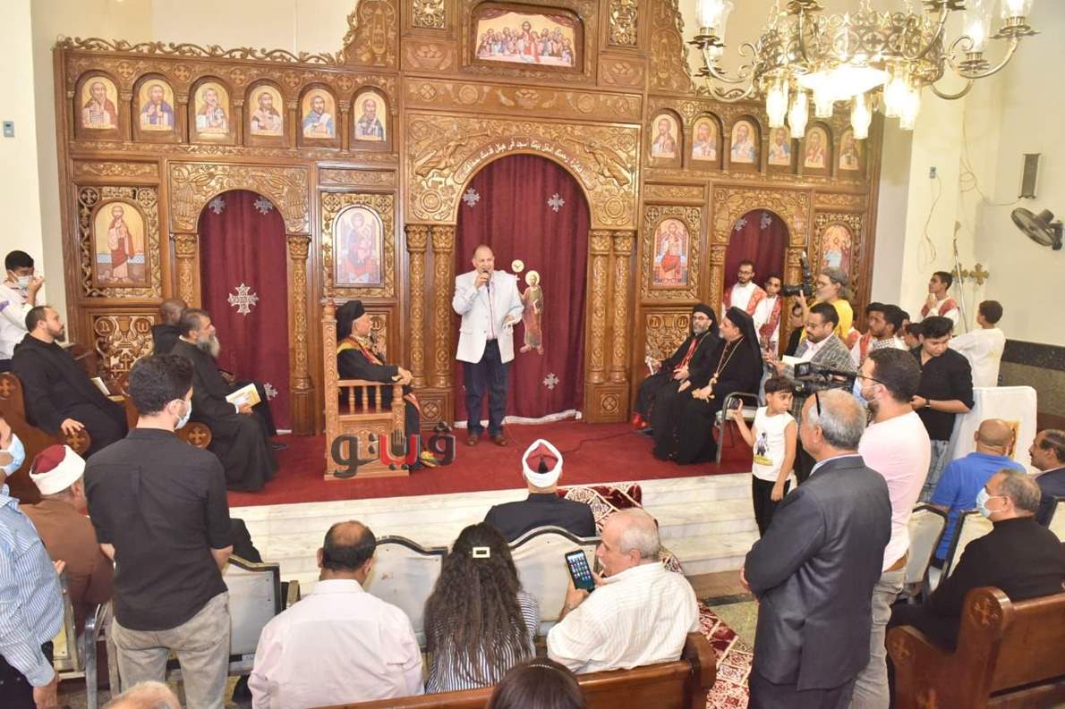 وبدأت الاحتفالية بإقامة الصوات بمشاركة الأنبا كيرلس وليم والأنبا دانيال لطفى وآباء الكنيسة ثم كلمة الأنبا كيرلس وليم التى رحب فيها بجميع الحضور الذين شاركوا فى حفل التدشين والتكريس.