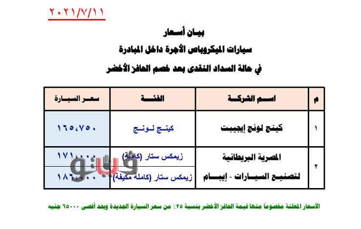 أسعار ميكروباصات كينج لونج وزيمكس في مبادرة إحلال السيارات