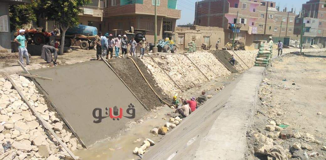 من تبطين ترعة وردان الكبيرة بمركز ومدينة منشأة القناطر، في إطار تعليمات اللواء