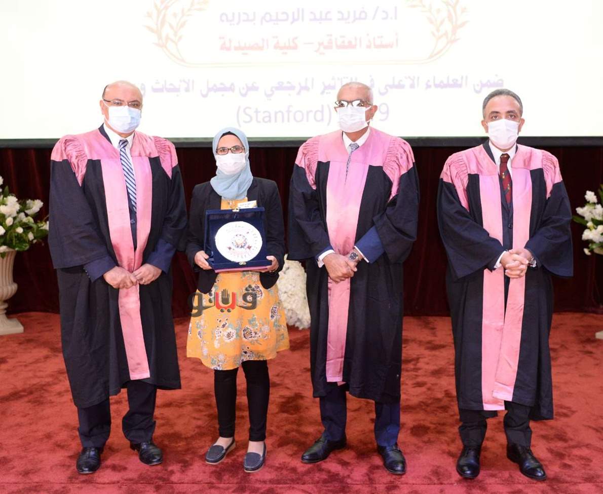 وقام كل من دكتور أشرف عبد الباسط ، الدكتور أشرف طارق حافظ ، ا الدكتور محمد عطية البيومى بتكريم عدد من أساتذة الجامعة وباحثيها الحاصلين على جوائز ستانفورد للتأثير المرجعى فى مجمل الأبحاث ، الدولة والهيئات والأفراد ، الجامعة ، الهيئات الخارجية ، وكان من أبرز المكرمين: الدكتور محمد غنيم و الأستاذ الدكتور أحمد شقير أستاذا جراحة الكلى والمسالك البولية الحاصلان على جائزة ستامفورد للتأثير المرجعى عن مجمل الأبحاث ، الدكتور أحمد عبد الخالق - أستاذ الأشعة التشخيصية بكلية الطب الحاصل على جائزة ستانفورد للتأثير المرجعى عن مجمل الأحداث وعلى جائزة الجامعة للتفوق العلمى لعام ٢٠٢٠، الدكتور محمد غنيم - أستاذ علم الاجتماع بكلية الآداب الحاصل على جائزة الدولة التقديرية فى مجال العلوم الاجتماعية لعام ٢٠١٨ ، الدكتور جمال شيحة - أستاذ الأمراض الباطنة والجهاز الهضمى بكلية الطب الحاصل على جائزة الدولة التقديرية فى مجال العلوم الطبية لعام ٢٠١٩، الدكتور السيد عبد الخالق - أستاذ الاقتصاد والمالية بكلية الحقوق والحاصل على جائزة الدولة التقديرية فى مجال العلوم الاجتماعية لعام ٢٠١٩، الدكتورة ناهد العنانى - أستاذ الكيمياء التحليلية بكلية الصيدلة الحاصلة على جائزة الجامعة للتفوق العلمى.