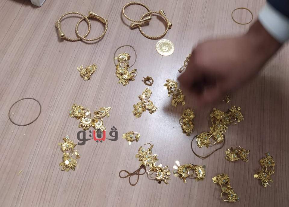 وكلف أسامة محمد دياب مدير الجمرك، نورهان محمد فؤاد مأمور الجمرك، بتفتيش الراكبة ذاتيا، مما اسفر عن وجود كمية اخري مما سبق ذكره في ملابسها بخلاف المشغولات الذهبية التي ترتديها، وقام زكريا حسب الله مدير إدارة الجمرك، بتشكيل لجنة مكونة من محمد جمال واحمد عطالله مأمورا الجمرك، تحت إشراف أحمد فوزي مدير الحركة لعد ووزن المضبوطات، وبلغت 141 قطعة متنوعة بوزن حوالي 750 جراما.