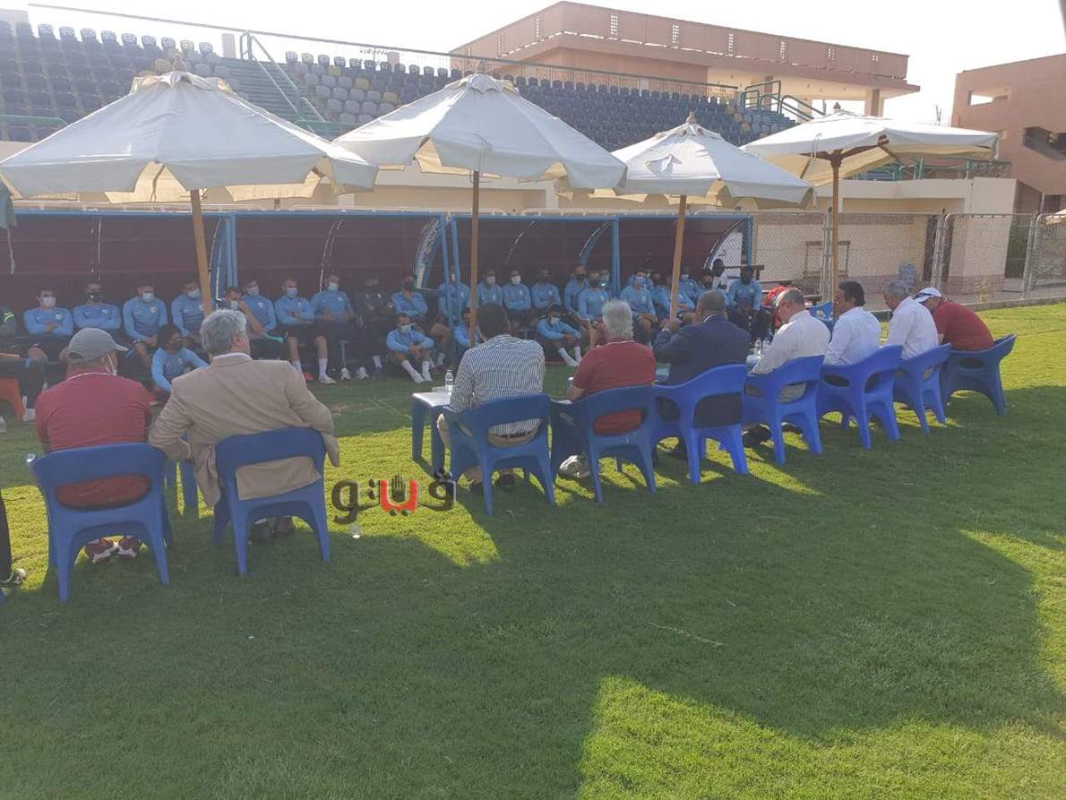 والتقى رئيس إنبي بجهاز إنبي بقيادة كابتن حلمي طولان ولاعبي الفريق الأول لكرة القدم خلال التدريب بملعب بتروسبورت.