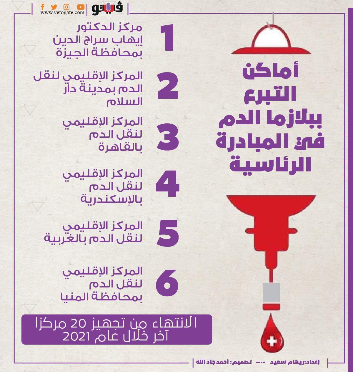 أماكن التبرع ببلازما الدم في المبادرة الرئاسية | إنفوجراف الخميس 15/يوليو/2021 - 12:21 م 7/15/2021 12:21:11 PM بلازما الدم ريهام سعيد شارك طباعة 18 حجم الخط --------------- إعداد: ريهام سعيد شارك طباعة وزارة الصحة الجيزة العجوزة بمحافظة المنيا إيهاب سراج الدين