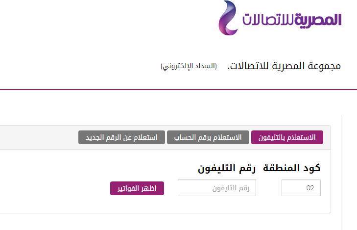وفور الدخول على موقع المصرية للاتصالات WE EGYPT تظهر خانة إدخال كود المنطقة ويجب من خلالها كتابة كود المنطقة التي يتواجد بها التليفون الأرضي وكتابة رقم الخط الأرضي في الخانة الأخرى المدون أعلاها رقم التليفون، وبعدها يتم الضغط على أيقونة إظهار الفواتير.