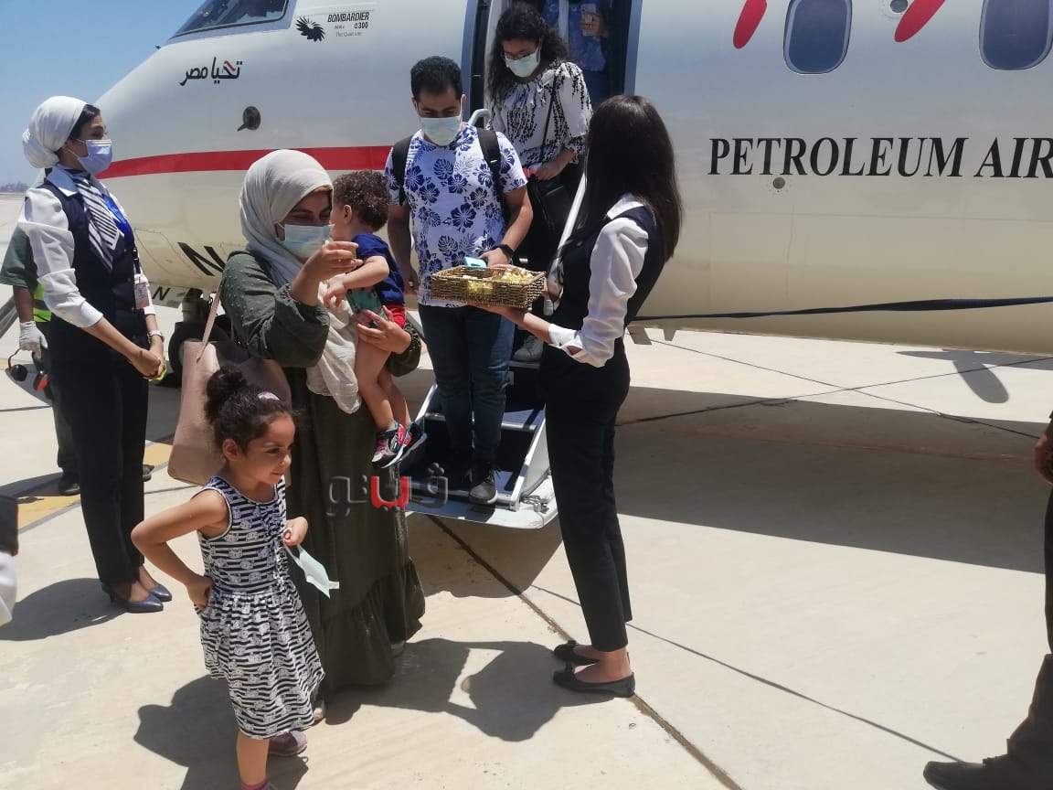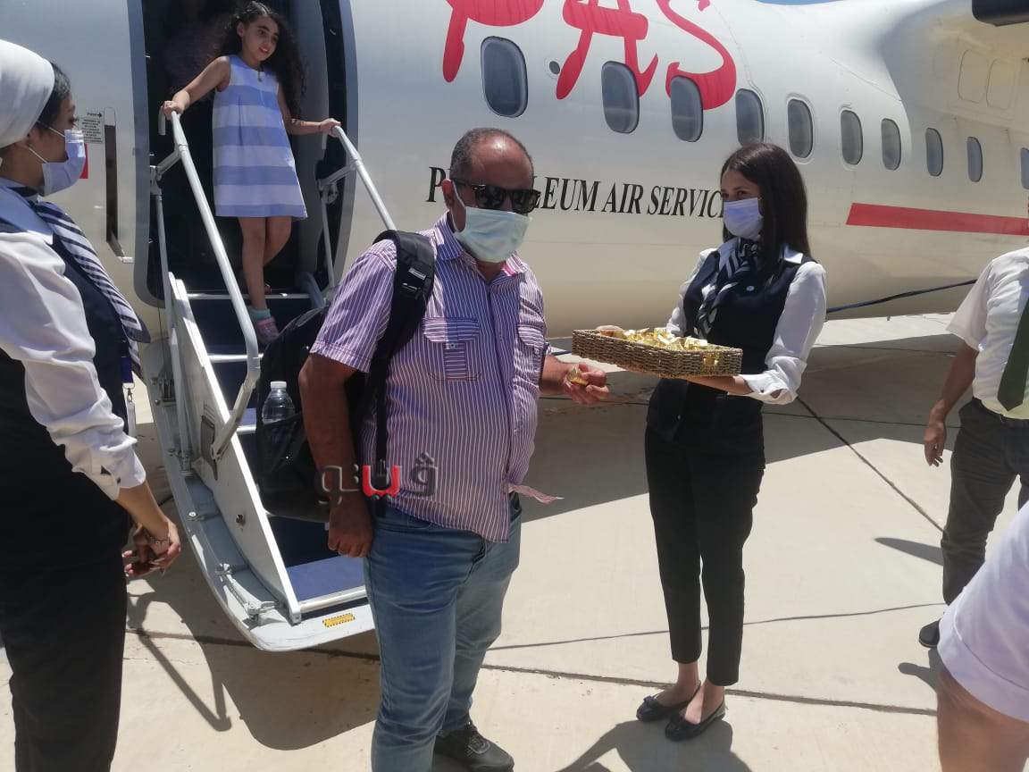 واستقبل المطار أولي الرحلات بتقليد رش المياه على الطائرة والذى يعد تقليد دولى متبع للترحيب بقدوم أول رحلة، وفى اجواء من الاحتفال والفلكلور الشعبي، وقام فريق العلاقات العامة بالمطار بإستقبال الركاب بالورود، وتم إنهاء إجراءات وصولهم بسهولة ويسر مع تطبيق كافة الإجراءات الإحترازية والوقائية للوقاية من فيروس كورونا والحفاظ على صحة الركاب.
