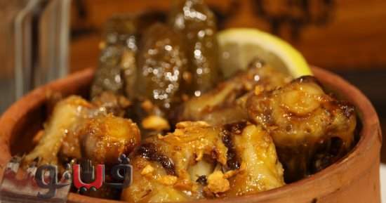 طريقة عمل طاجن ورق العنب بالكوارع :-