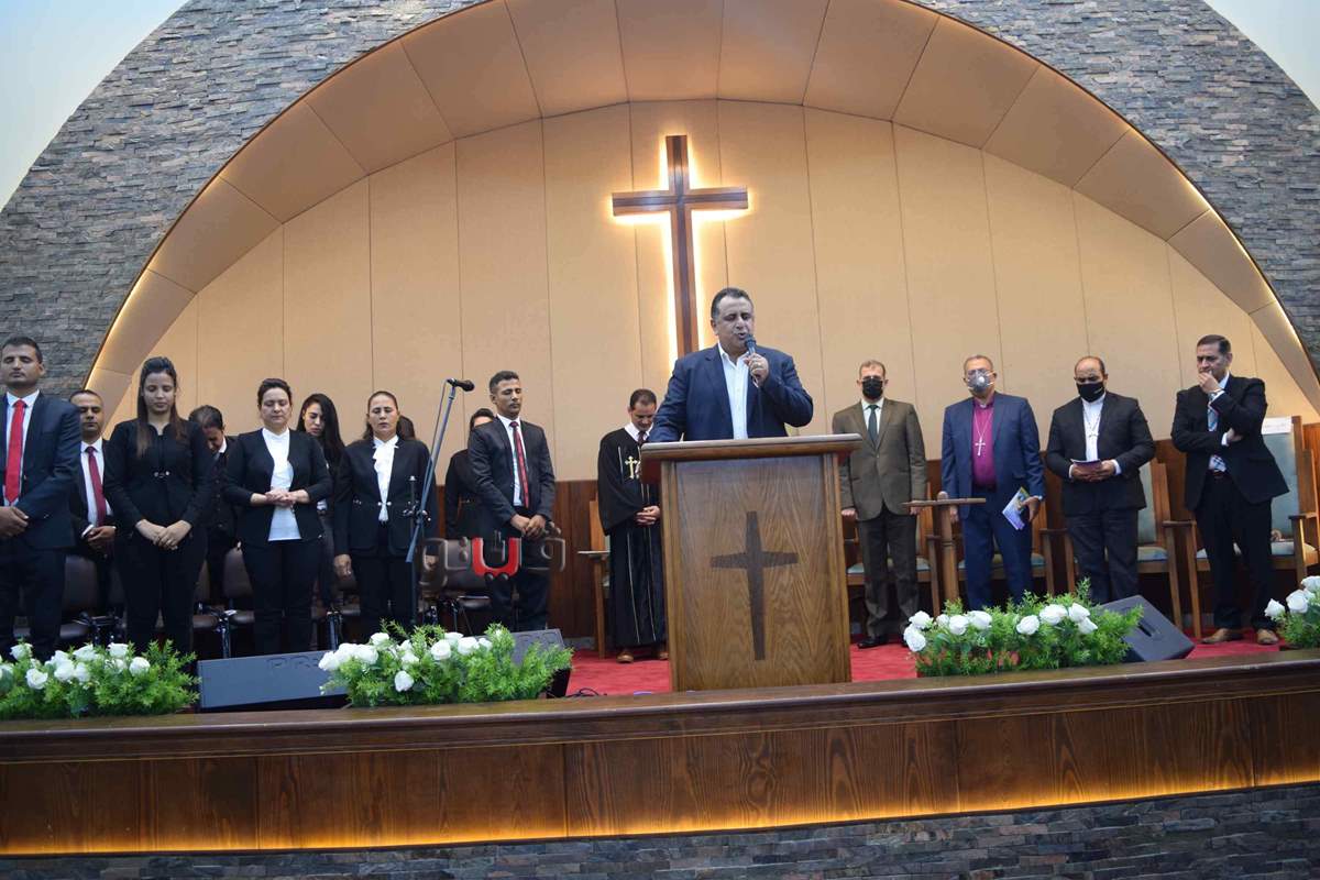 جاء ذلك بحضور القس اندريه ذكي رئيس الطائفة الإنجيلية بمصر ، اللواء أ.ح ياسر عبدالعزيز رئيس مدينة المنيا، وأعضاء مجلسي النواب والشيوخ ، القس نادي لبيب رئيس سنودس النيل الإنجيلي، القس رفعت فتحي امين عام سنودس النيل الإنجيلي، القس عصام عطيه رئيس مجمع المنيا الإنجيلي، وعدد من القيادات التنفيذية والسياسية والدينية.