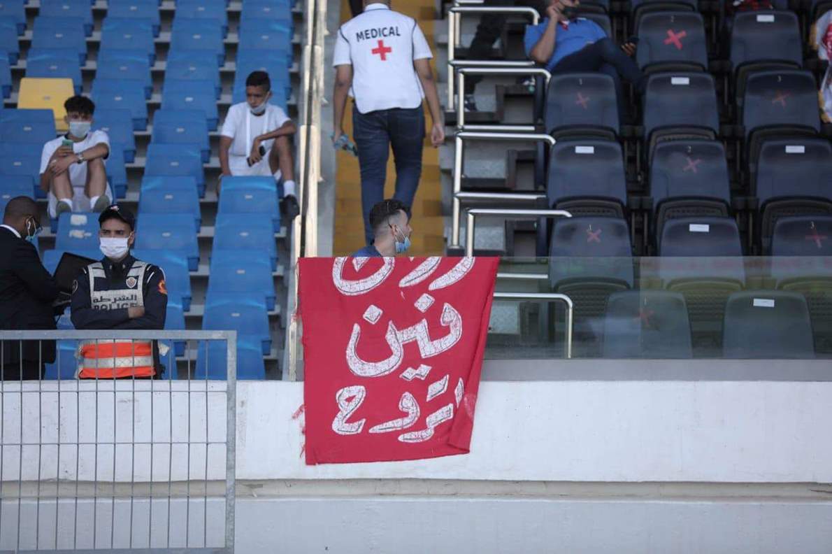 وتداول عدد من رواد مواقع التواصل الاجتماعي، عدد من الصور التي رفع فيها أحد الجماهير عدد من اللافتات التي تحمل شعارات دعم للمارد الأحمر في مدرجات، والتي جاء أبرزها "وراك فين ما تروح"، و"أعظم نادي في الكون".