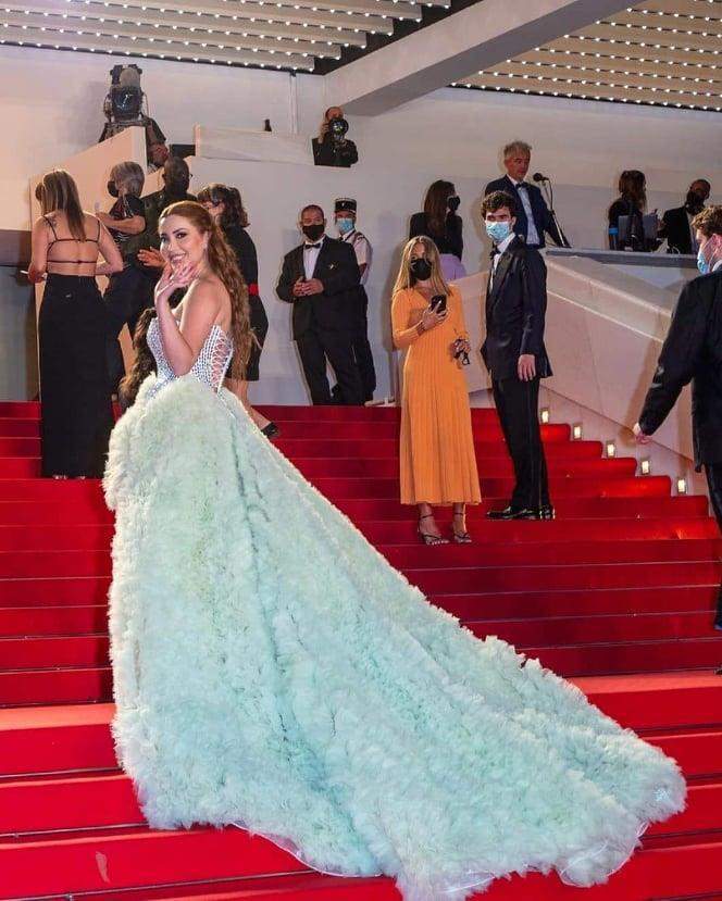 أما الفنانة نسرين طافش، لفتت الأنظار إليها بعد ظهورها بفستان طويل، وحرصت نسرين، على استعراض رشاقتها على السجادة الحمراء بمهرجان كان السينمائي.