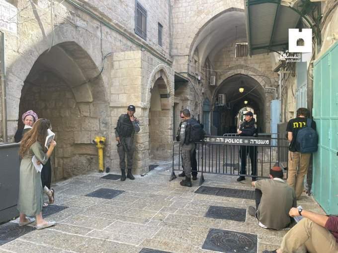 وأظهرت الصور عدد من المستوطنين من أمام باب السلسلة، وهم يمارسون طقوساً تلمودية بشكل علني، تزامناً مع اقتحام المئات للمسجد الاقصى، حيث نصبت قوات الاحتلال الإسرائيلي حواجزها على الأبواب منعاً لدخول المصلين.
