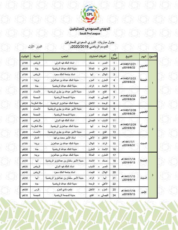 إعلان جدول الدور الأول للدوري السعودي للمحترفين