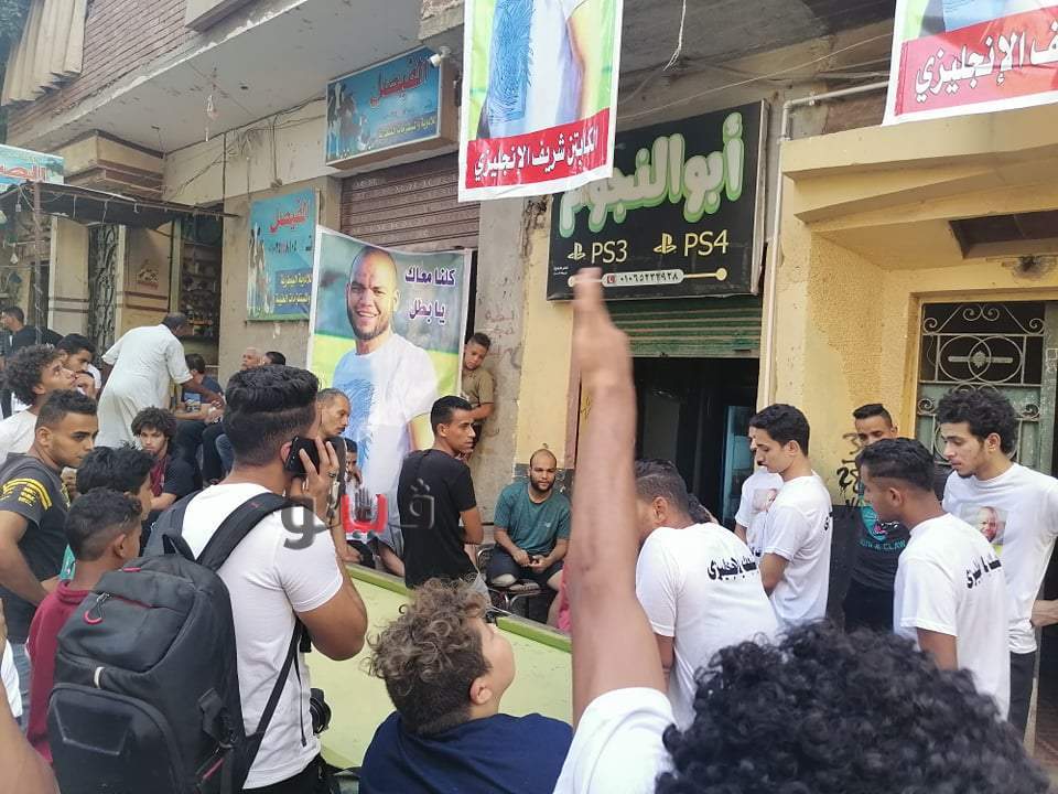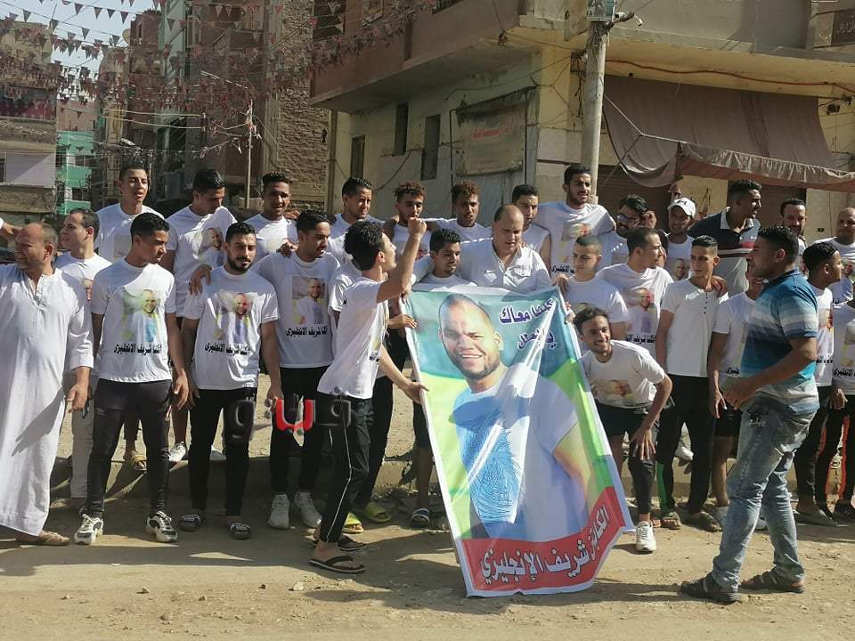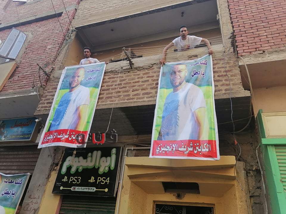 وتجمع اهالى وشباب مركز شباب ملوى وقاموا باستقبال شريف الانجليزى منذ لحظة وصولة إلى مسقط رأسه في مركز ملوى بالهتافات "بنحبك يا شريف وكلنا بنحبك يا شريف .. وتقوم يابطل" كما ارتدى بعض الشباب أصدقاء اللاعب التشيرتات المكتوب عليها "بنحبك يا انجليزى".