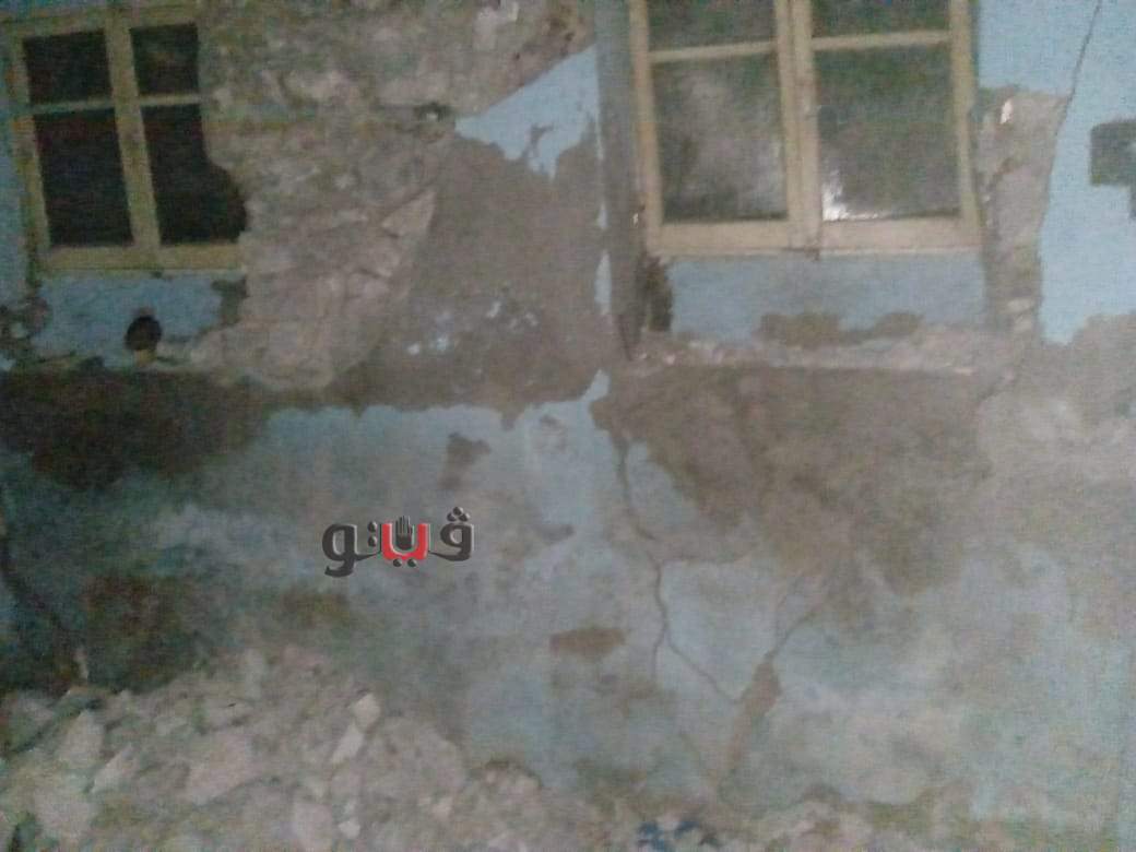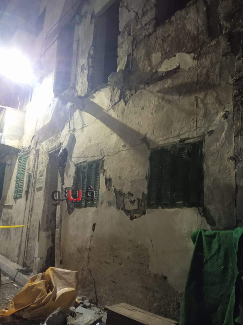 وتمت المعاينة للعقار المكون من أرضي + ٣ أدوار علوية، وخالٍ من السكان، وتبين سقوط أجزاء من الداخل دون وقوع إصابات، كما تبين أن العقار متهالك وبه شروخات وتصدعات.