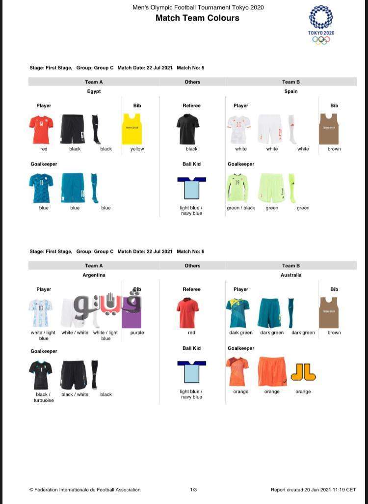 يخوض المنتخب الأولمبي لكرة القدم، مباراة إسبانيا الخميس المقبل، في الجولة الأولى من دورة الألعاب الأولمبية طوكيو 2020، بالقميص الأحمر والشورت الأسود والجورب الأسود.