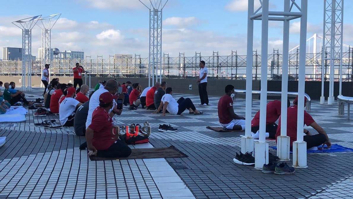 لحظة تأدية بعثة مصر في طوكيو صلاة العيد بالقرية الأولمبية | صور