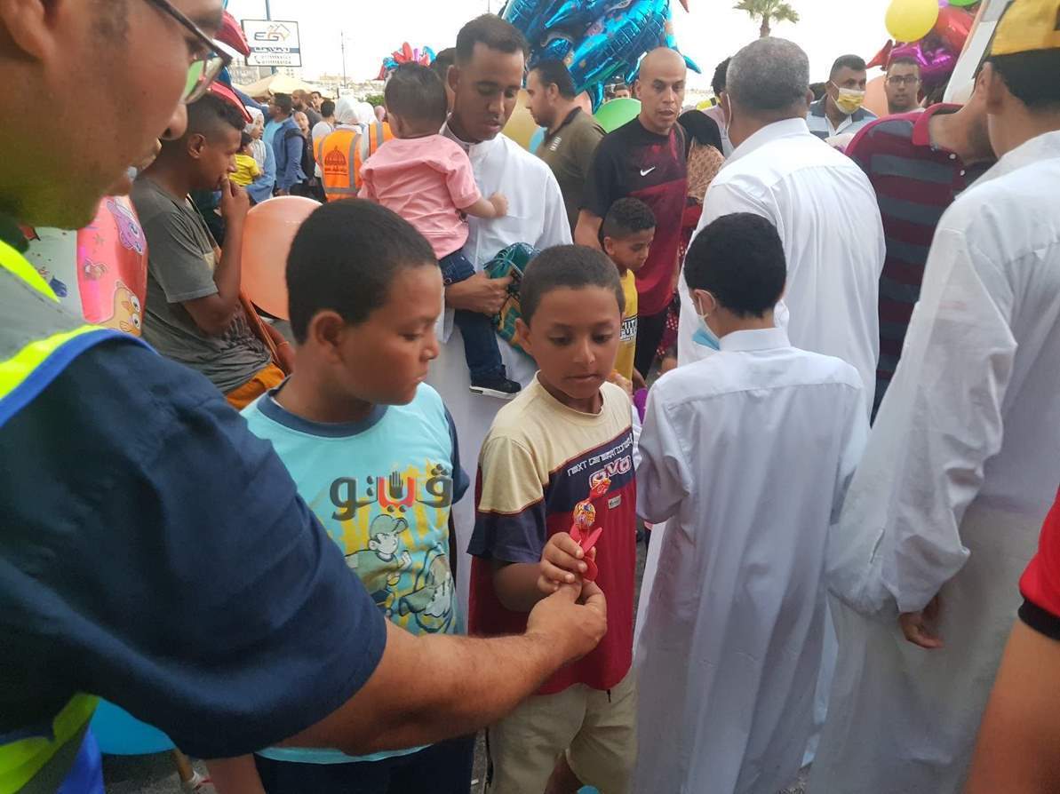وزع عدد من شباب المجتمع المدني محافظة مطروح الألعاب على الأطفال أثناء توافدهم على المساجد لأداء صلاة عيد الأضحى المبارك.