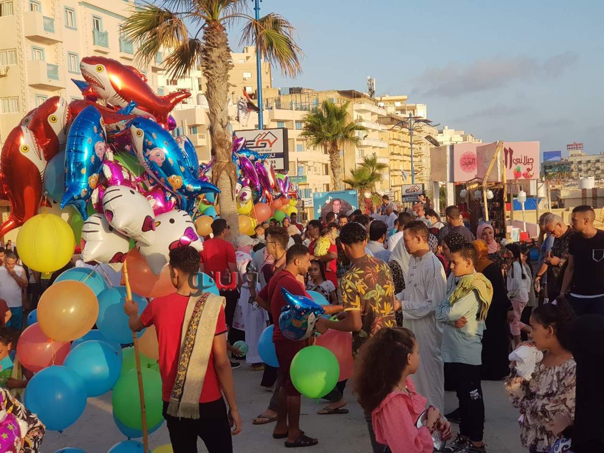 بالثلج والبلالين.. احتفال الأطفال بالعيد على كورنيش مرسى مطروح | صور