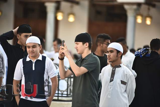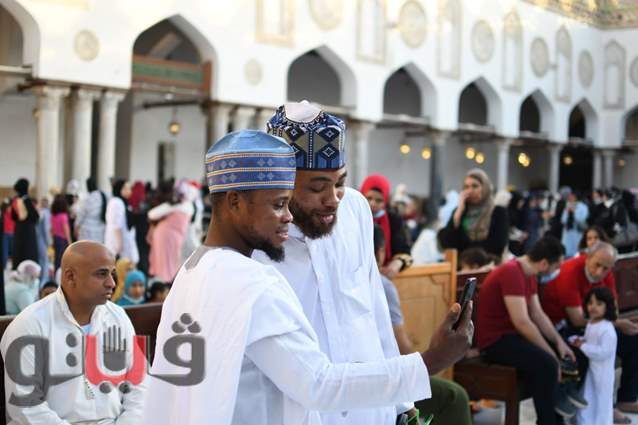 وفي ساحة الجامع الأزهر على وجه التحديد، يكون للبهجة مذاق خاص حيث الضحكات النابعة من وجوه تحمل جنسيات مختلفة، تجمعهم مشاعر واحدة، ويؤدون الطقوس ذاتها في الاحتفال بعيد الأضحى المبارك بعد انتهاء شعائر الصلاة.
