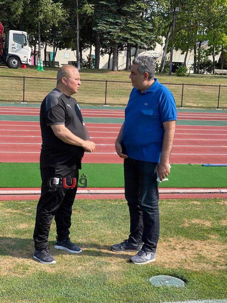 ووصل الرباعي محمد الشناوي وطاهر محمد طاهر واكرم توفيق وصلاح محسن بصحبة المهندس احمد مجاهد رئيس اتحاد الكره الذي اصر علي الحضور لمؤازرة الفريق.