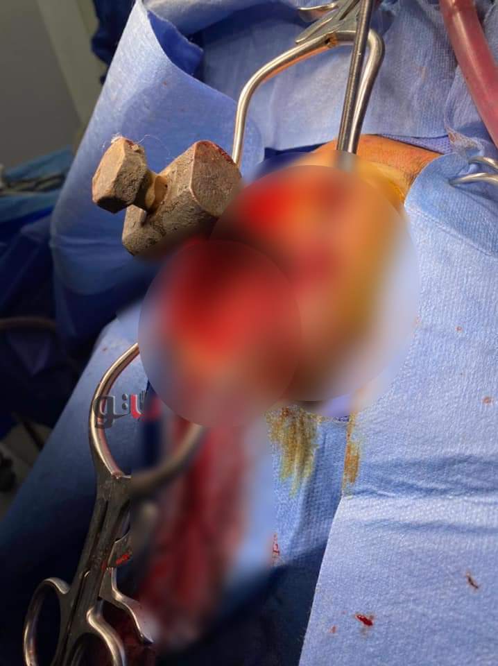 وخلال عملية جراحية مكبرة استمرت لما يقرب من ٥ ساعات، وبمشاركة ٧ أطباء بالإضافة إلى طاقم التمريض تم استخراج مسمار الكاوتش الخاص بسيارة النقل الثقيل من جمجمة المريض ، بعد أن اخترق المسمار عظام الجمجمة ليستقر في العظام القفوية للجمجمة .