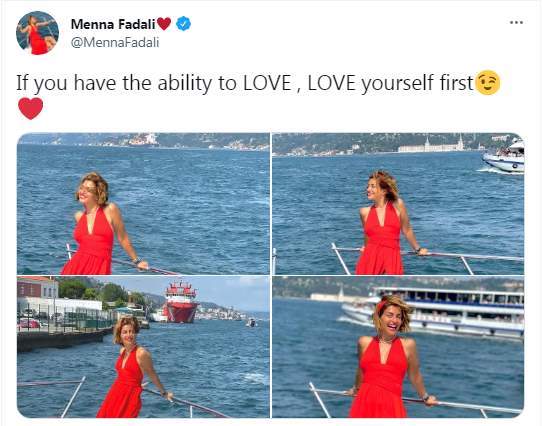 وكتبت منة فضالي تغريدة على تويتر "إذا كان لديك القدرة على الحب، فحب نفسك أولًا".