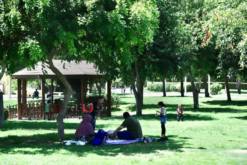 شهدت حديقة الأزهر في القاهرة، إقبالا متوسطا من المواطنين المحتفلين بأول أيام عيد الأضحى المبارك، وهذا بسبب درجات الحرارة المرتفعة التي جعلت الكثير من المحتفلين يجلسون تحت الأشجار لتجنب أشعة الشمس المباشرة.