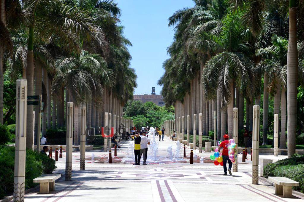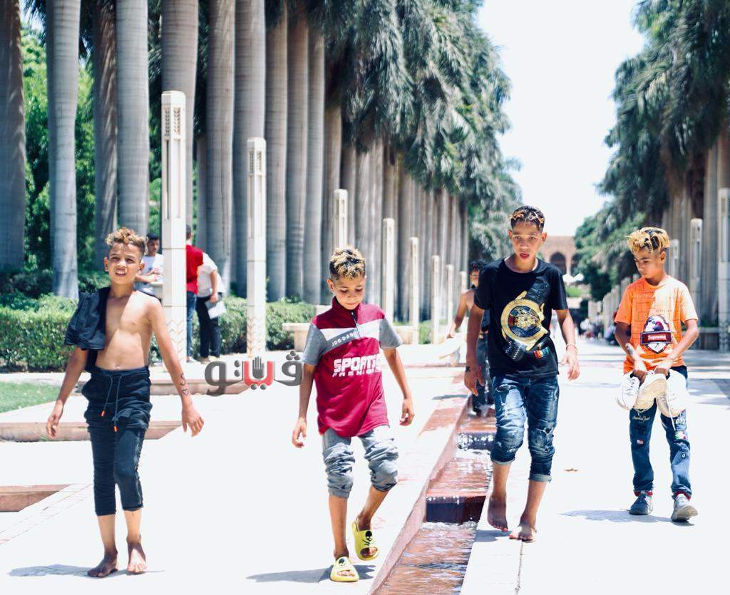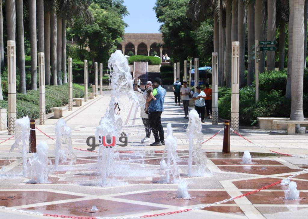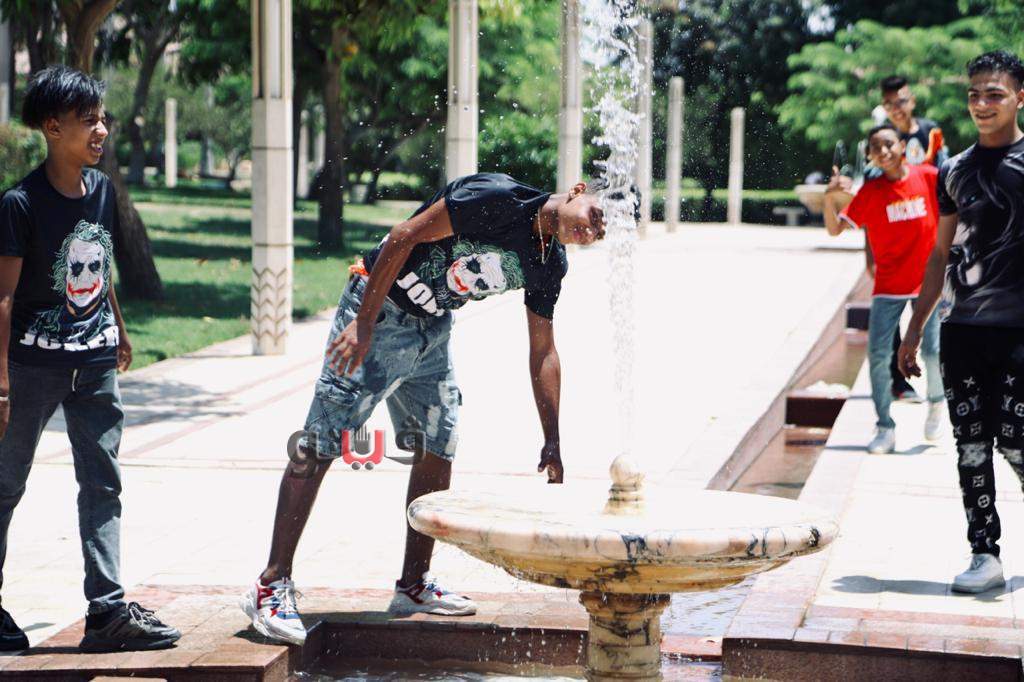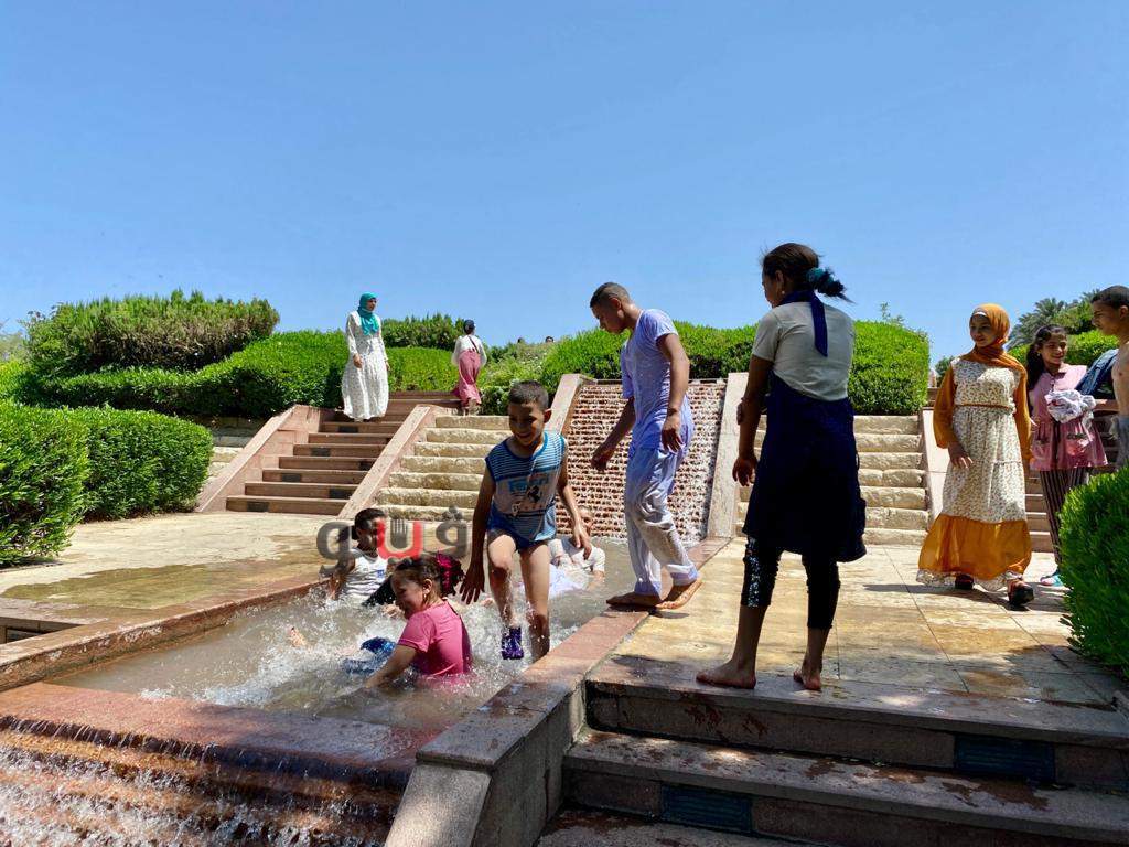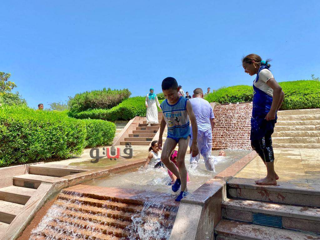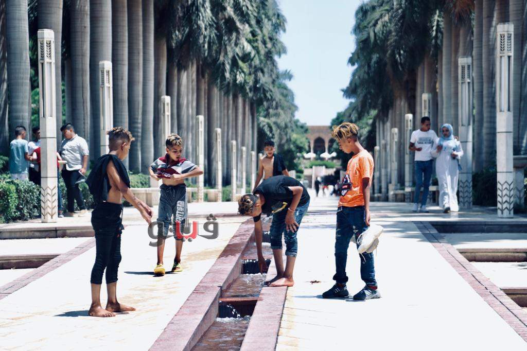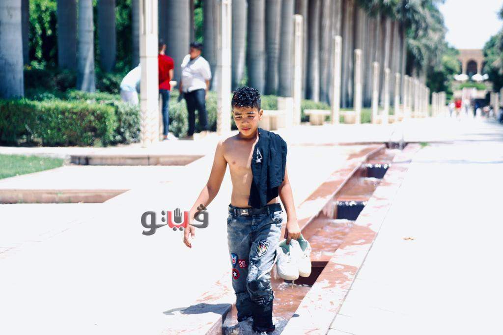 حرص العديد من الأطفال المحتفلين بعيد الأضحى المبارك، على الإستحمام في نافورة حديقة الأزهر في أول أيام العيد، هربا من حرارة الجو التي وصلت إلى حوالي 37 درجة مئوية في القاهرة.