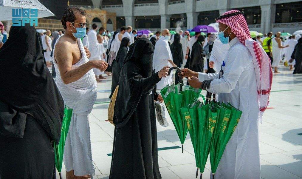 توزيع 60 ألف مظلة على الحجاج والعاملين في المسجد الحرام | صور