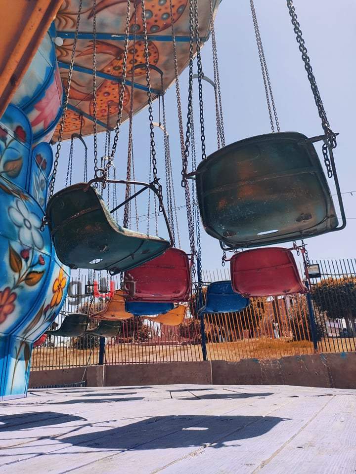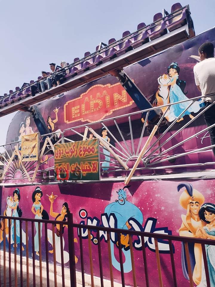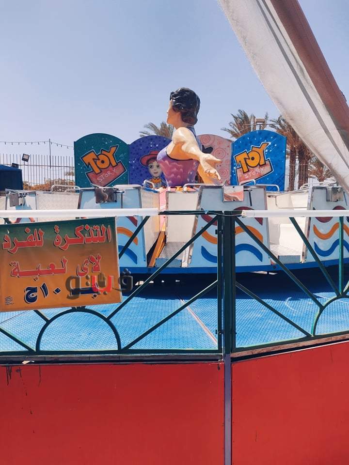 وكانت اللافتة معلقة على إحدى الألعاب المتواجدة داخل مدينة الملاهي.