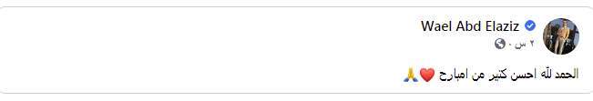 وقال وائل عبد العزيز، عبر حسابه الشخصي بموقع التواصل الاجتماعي "فيس بوك": "الحمد لله أحسن كتير من امبارح".