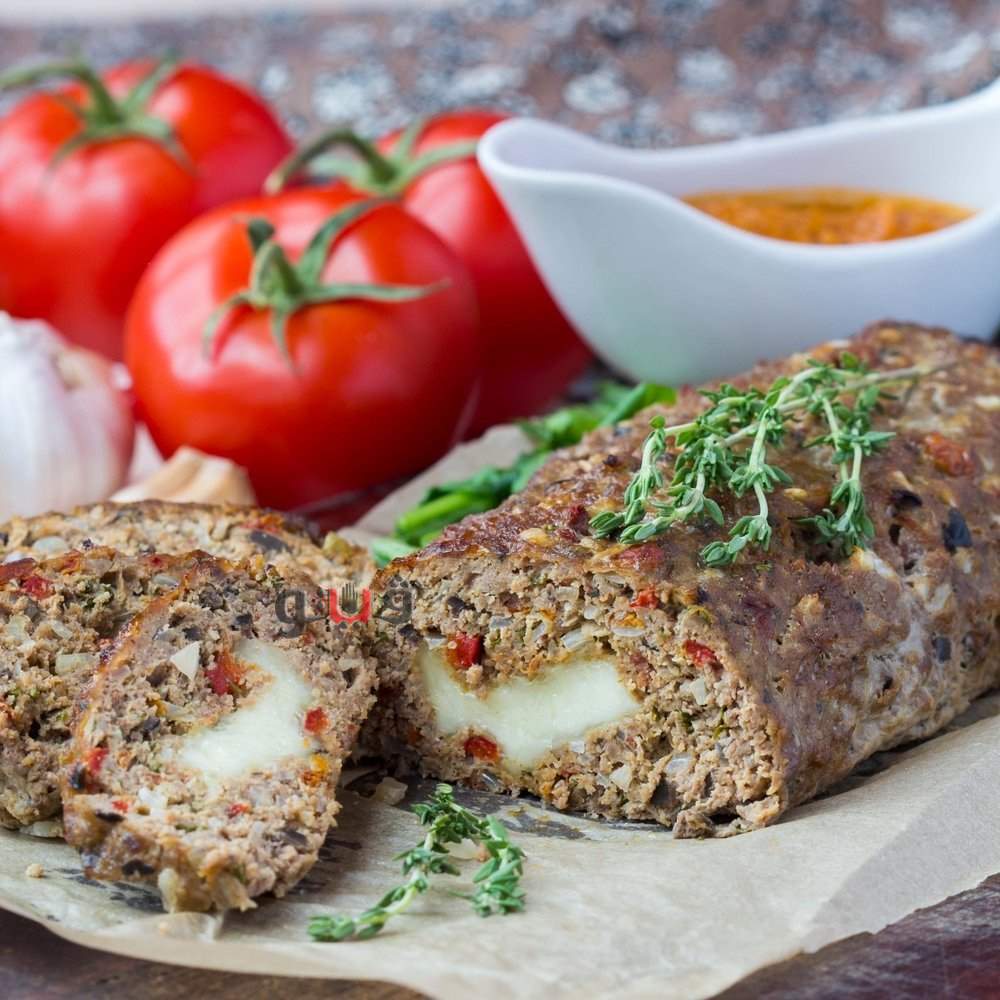 نضع باقى الجبن وسط العصاج ونرش الزعتر والملح والفلفل ونلف اللحم رول ونستعين بخيط للربط جيدا حتى لا يفك ويتماسك