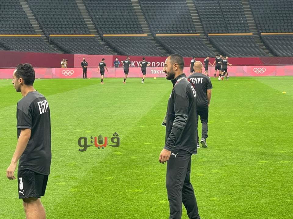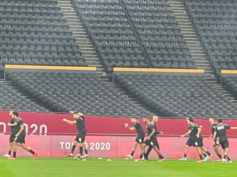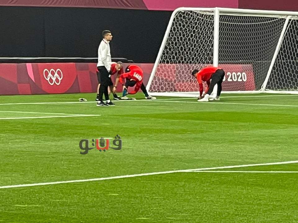 المنتخب الأولمبي يجري عمليات الإحماء استعدادا لمواجهة إسبانيا