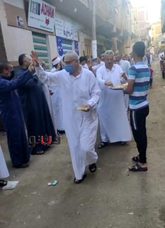 وأكد الشابوري أن الأهالي تقف في صفوف أمام المساجد، وذلك عن طريق خروج أول شخص ووقوفه، ثم يخرج ثاني شخص يسلم عليه ويقف بجواره، ويخرج ثالث شخص ويسلم عليهما ويقف بجوارهما، وهكذا حتى خروج آخر شخص من المسجد، وذلك على مستوى كافة مساجد القرية.
