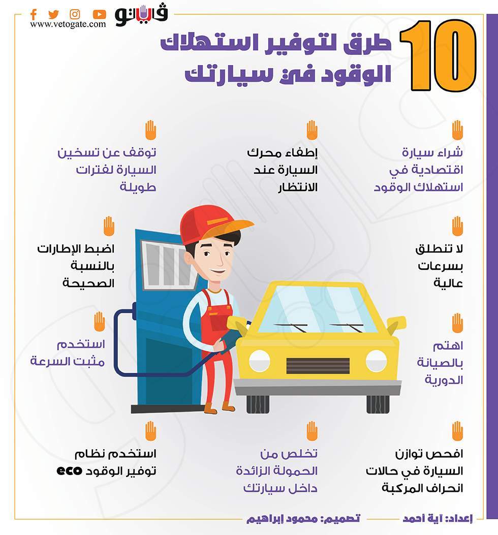 10 طرق لتوفير استهلاك الوقود في سيارتك|إنفوجراف